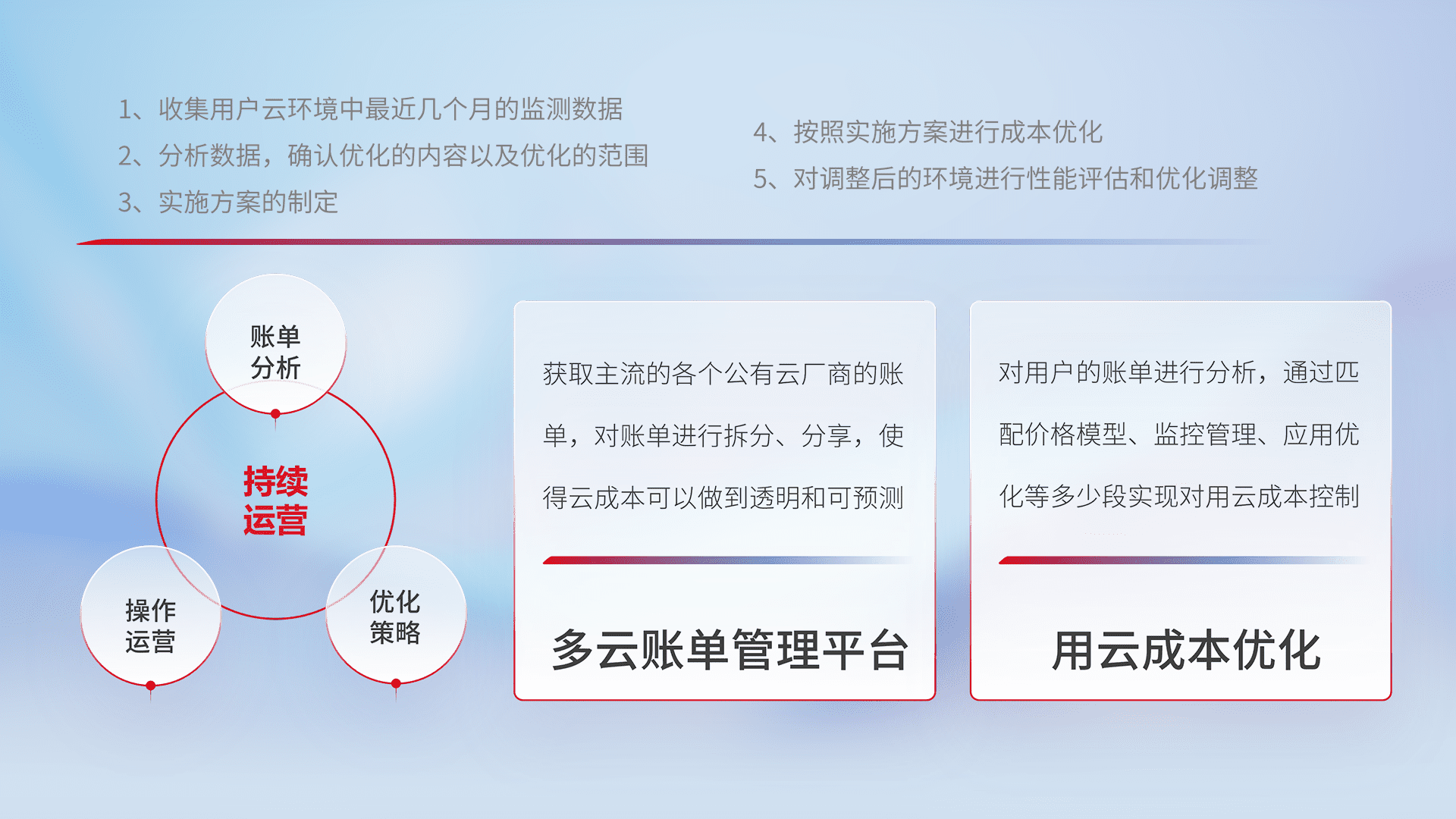 运用智能化工具分析云资源,,,提供日常费用可视化工具,,,自动账单拆分,,成本优化云上费用,,,,降本增效。。